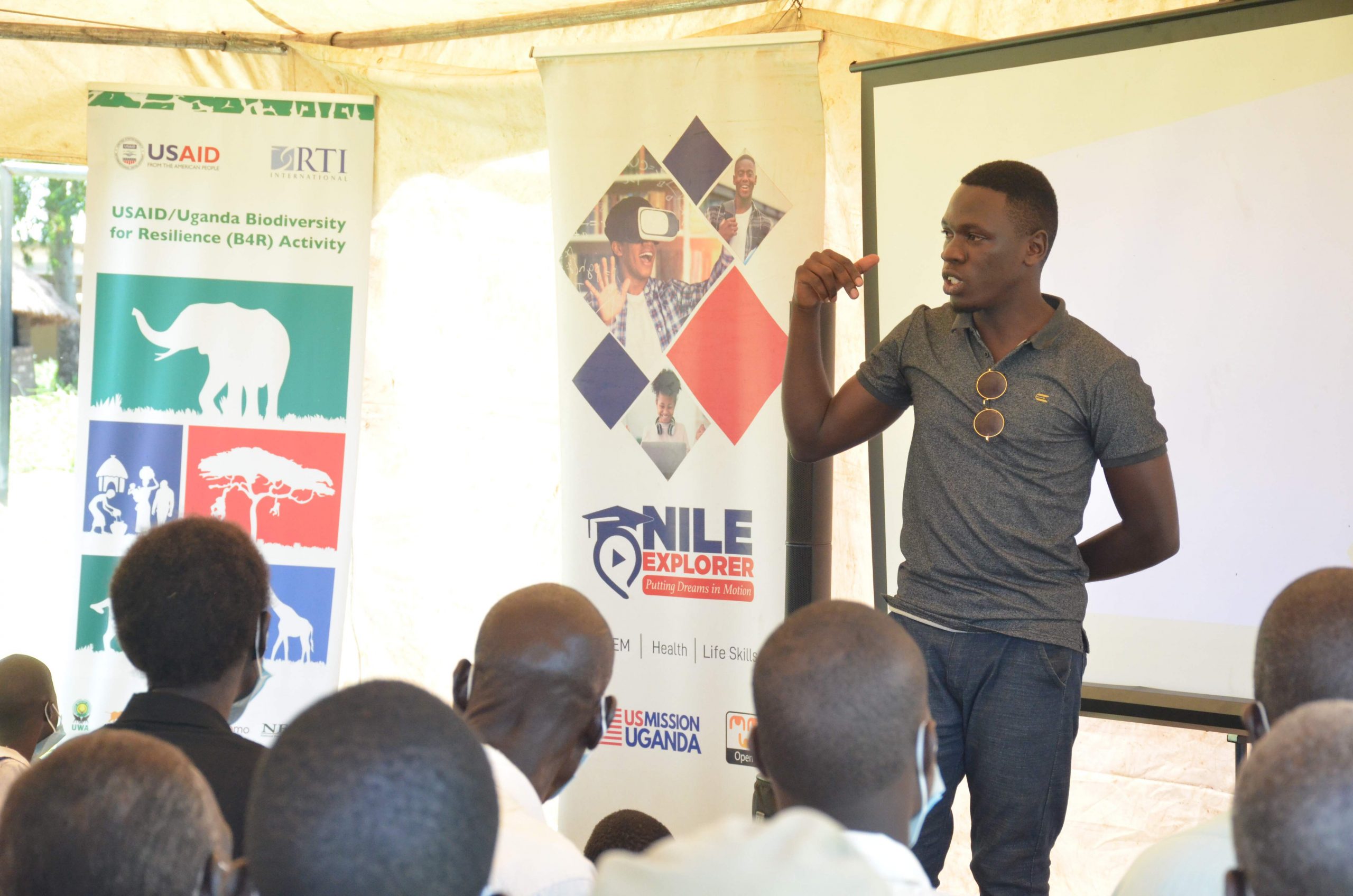 Nwoya, UGANDA – On 18th May 2022, The Nile Explorer Bus ๐ – a project funded by U.S Mission Uganda – worked together with USAID/Uganda Biodiversity for Resilience, RTI International, and Open Space Center for the screening of episodes of the popular N*Gen TV Series ๐บ on “Human-Wildlife Conflict” in Nwoya District in Northern Uganda.